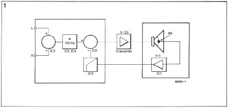 Bild 1. Blockschaltbild der Bassregelung mit modifiziertem Chassis.