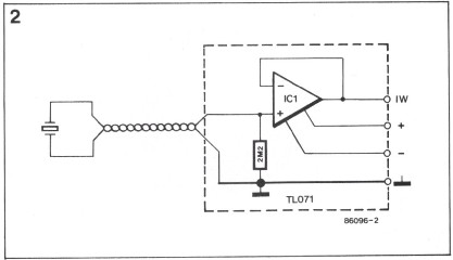 Normalfall. Wenn Fall Zwei eintritt, ist der Piezo falsch angeschlossen. Hier hilft ein Vertauschen der beiden Anschlussdrähte am Eingang des Impedanzwandlers.